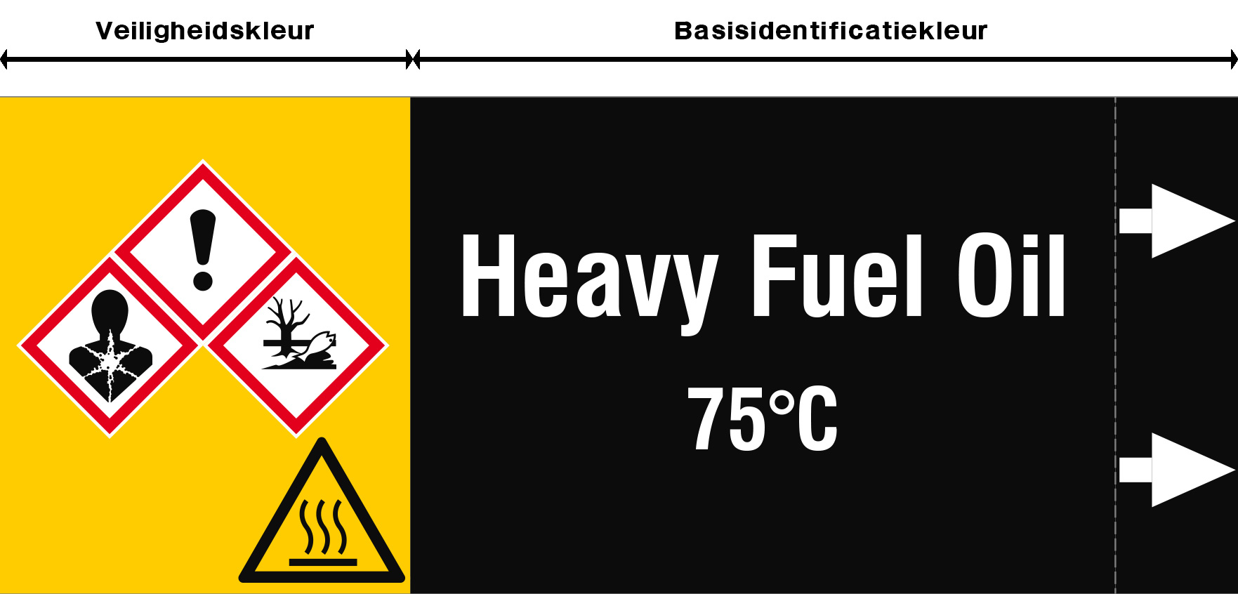 Stijl A(360)-Y: leidingmerker met basisidentificatiekleur + gele veiligheidskleur.