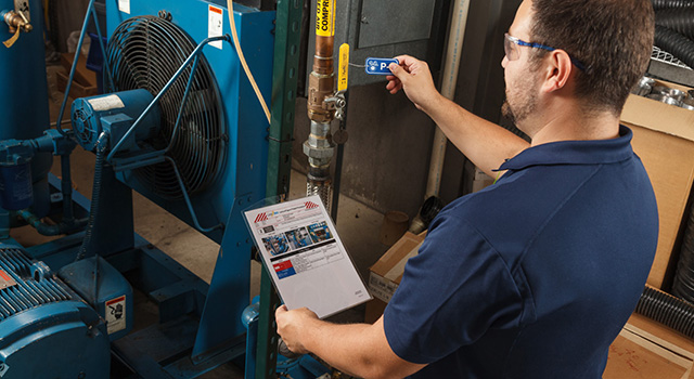 Ontvang een lijst met Lockout/Tagout-systemen om relevante kleppen, hendels, drukknoppen, stroomonderbrekers en andere energiecontrolepunten in de gesloten stand te vergrendelen.
